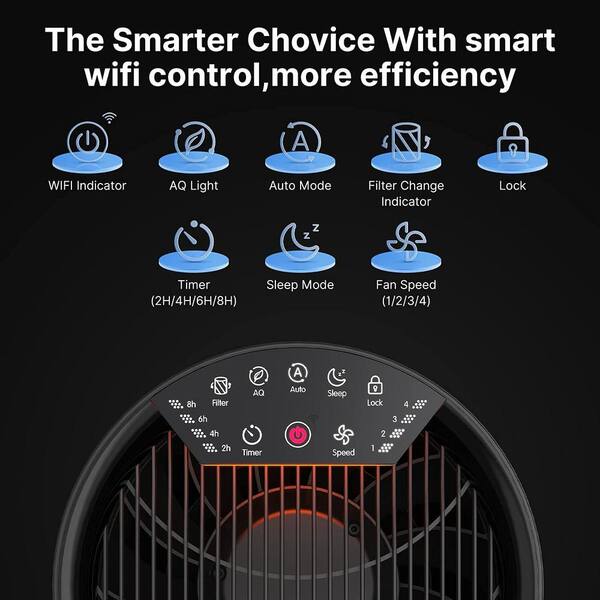 Air Purifier Air Cleaner for Home Large Room 960 sq.ft. HEPA Filter in Black, WiFi and Alexa Control through APP Black