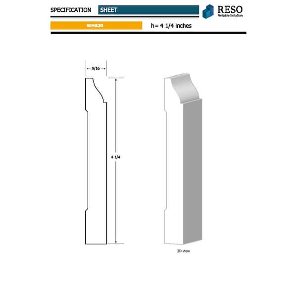 620 9/16 in.D x 4 1/4 in. W x 96 in. L Primed Pine Finger-Joined Pine Wood Baseboard Molding 20-piece 160 ft. Total