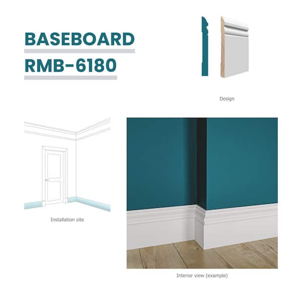 RMB 6180 11/16 in. D x 6 1/4 in. W x 96 in. L Primed Finger-Joined Wood Pine Baseboard 10-Piece 80 ft. Total