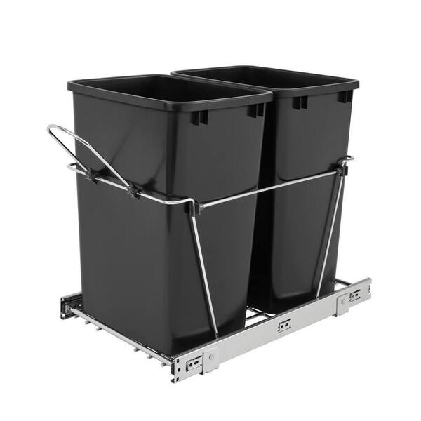 Double 35 Qt. Pull-Out Waste Bin Containers and Flip Top Waste Bin Lid