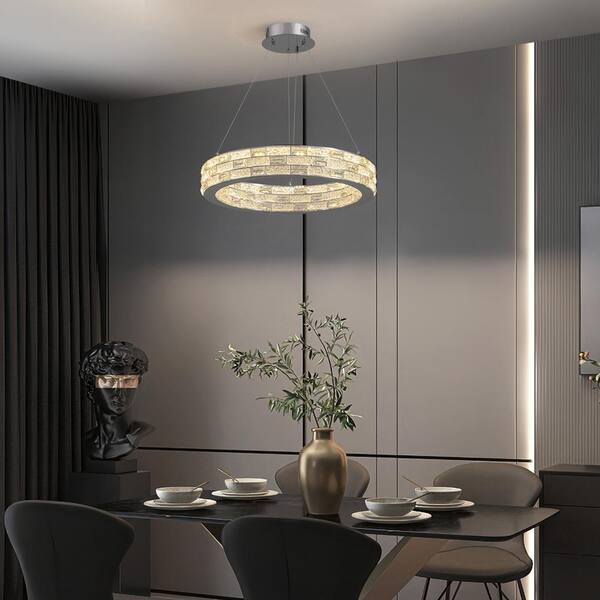 23.6 in. Modern 1-Light Integrated LED Chrome Crystal Chandelier Round Color Changing Light Fixture for Dinning Room