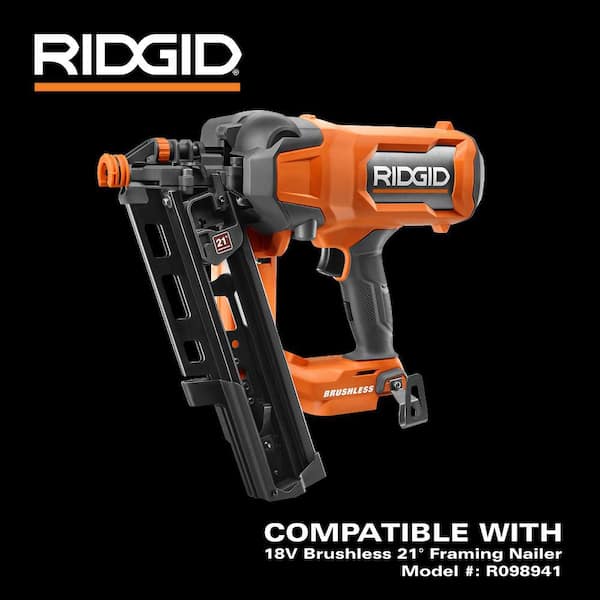 • Compatible with RIDGID 18V Brushless 21° Framing Nailer