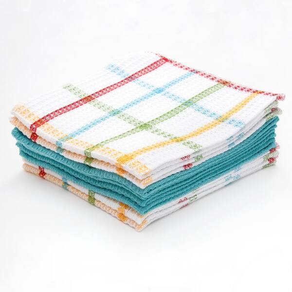 Multi Waffle Weave Checkered Cotton Dish Cloth (Set of 8)