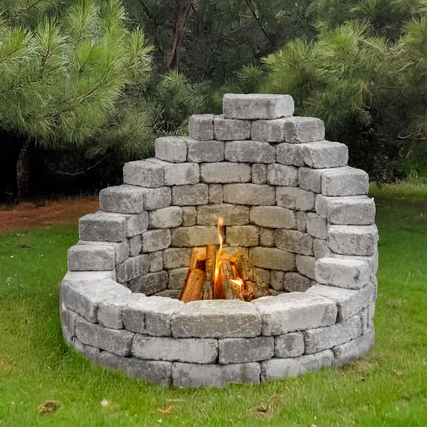 Latessa 53.75 in. x 39.375 in. Charcoal Blend Outdoor Weathered Round Concrete Firepit Kit