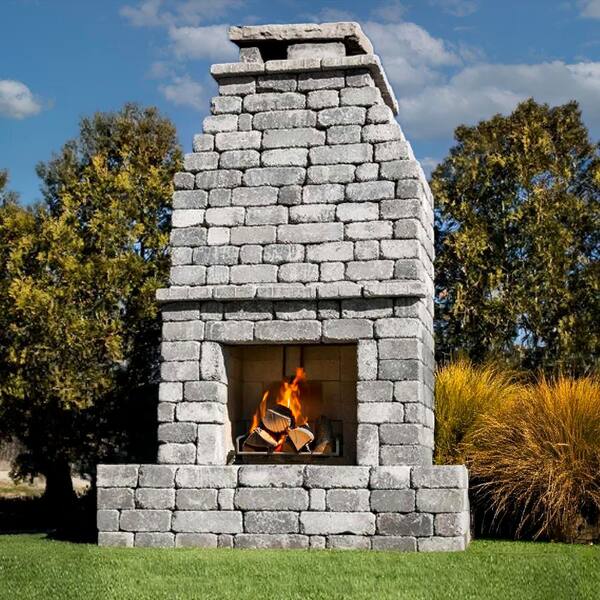 Rockwell 47.25 in. x 66.875 in. x 105.5 in. Charcoal Blend Outdoor Weathered Concrete Fireplace Kit