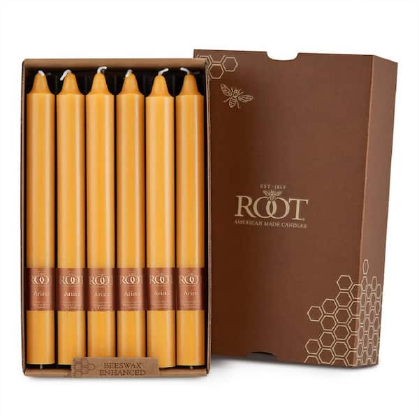 Smooth Arista 9 in. Butterscotch Unscented Taper Candle (Box of 12)