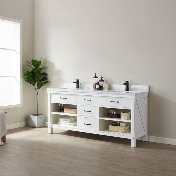 72 in. W x 22 in. D x 33.9 in. H Bathroom Vanity in White with White Stone Composite Countertop without Mirror