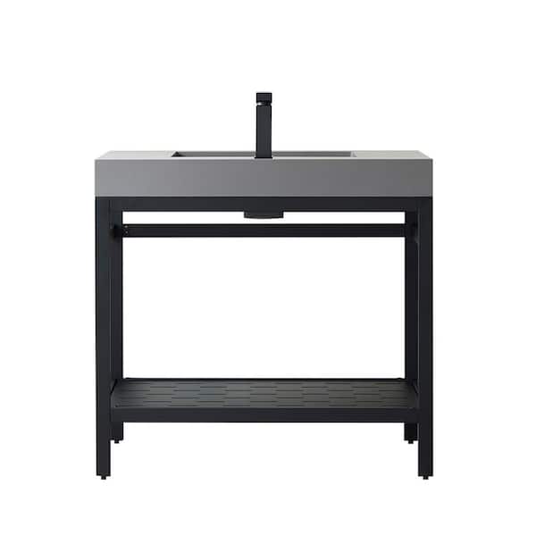Ablitas 36 in. W x 20 in. D x 34 in. H Bath Vanity in Matt Black with Grey Composite Stone Top