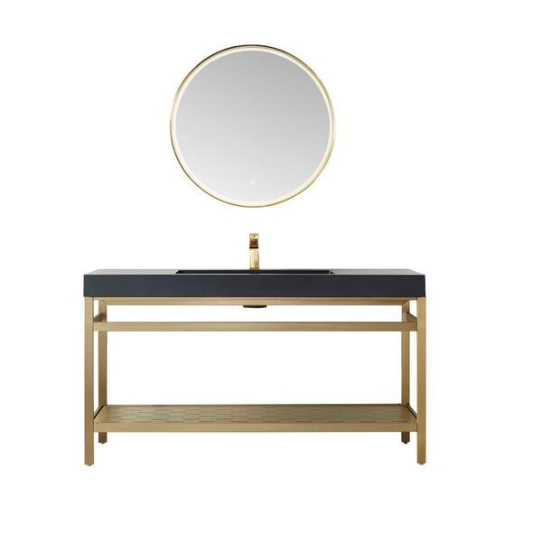 Ablitas 60 in. W x 20 in. D x 34 in. H Single Sink Bath Vanity in Brushed Gold with Black Composite Stone Top and Mirror