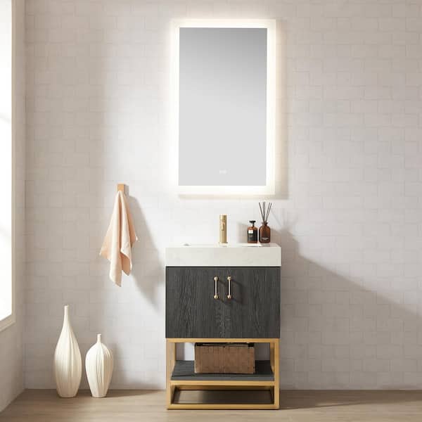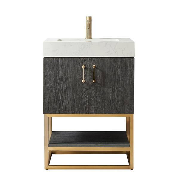 Alistair 24 in. W x 22 in. D x 33.9 in. H Single Sink Bath Vanity in North Black Oak w/ White Grain Stone Composite Top