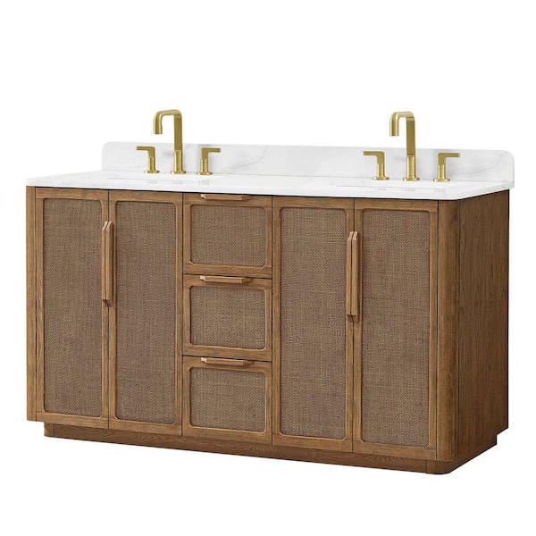 Busan 60 in. W x 22 in. D x 33.9 in. H Double Bath Vanity in Oak Classic Brown with White Quartz Stone Top