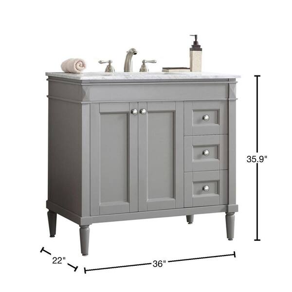 Catania 36 in. W x 22 in. D x 35 in. H Vanity In Grey with Marble Vanity Top in White with Basin