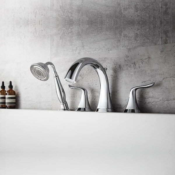 Claudius 2-Handle Tub Deck Mount Roman Tub Faucet with Hand-Held Shower in Polished Chrome