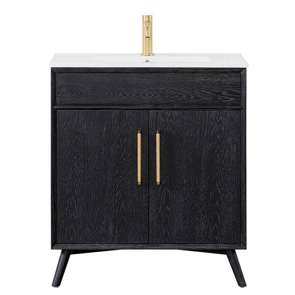 Delhi 29.9 in. W x 18.3 in. D x 34.1 in. H Single Sink Bath Vanity in Fir Wood Black with White Ceramic Basin Top