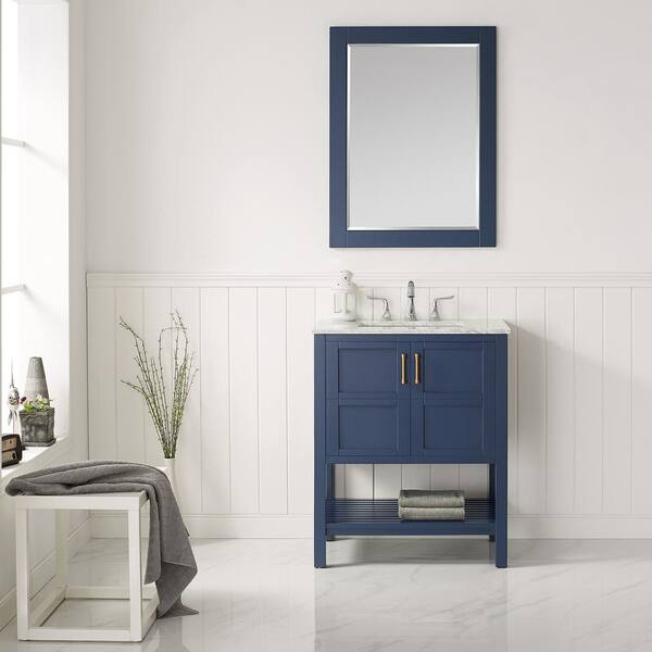 Florence 30 in. Bath Vanity in Blue with Marble Vanity Top in White with White Basin and Mirror