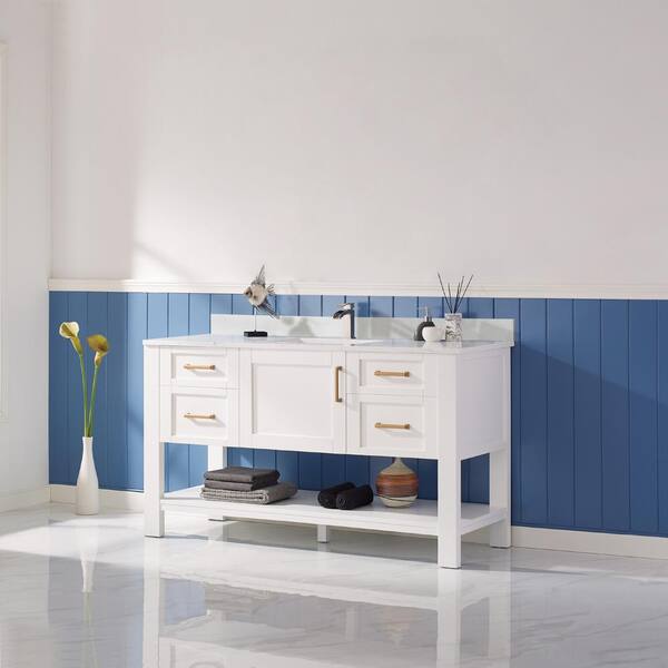 Grayson 60 in. Bath Vanity in White with Composite Vanity Top in White with White Basin