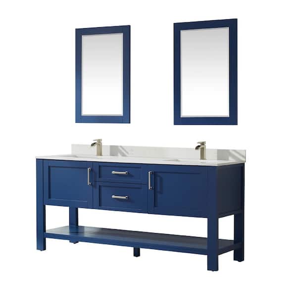Grayson 72 in. Bath Vanity in Jewelry Blue with Composite Vanity Top in White with White Basin and Mirror