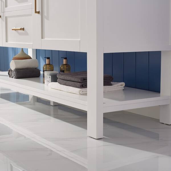 Grayson 72 in. Bath Vanity in White with Composite Vanity Top in White with White Basin and Mirror