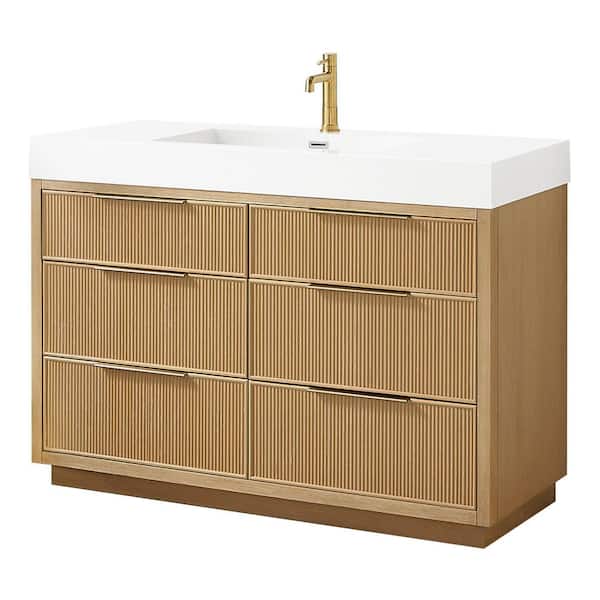 Hohhot 48 in. W x 19.7 in. D x 33.8 in. H Single Bath Vanity in Washed Ash Grey with White Engineered Stone Top