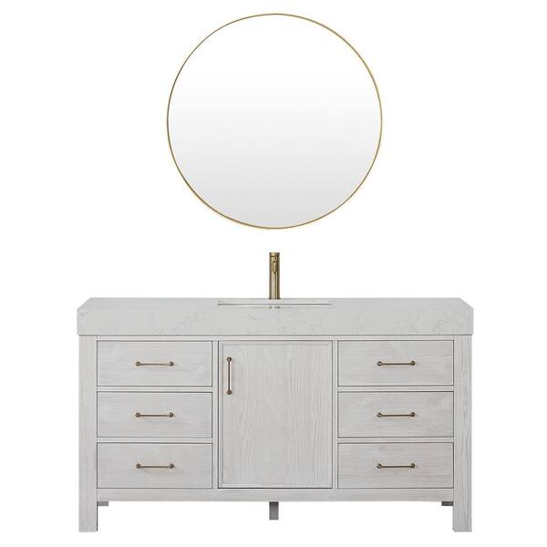 León 60 in. W x 22 in. D x 34 in. H Single Bath Vanity in Washed White with White Composite Stone Top and Mirror