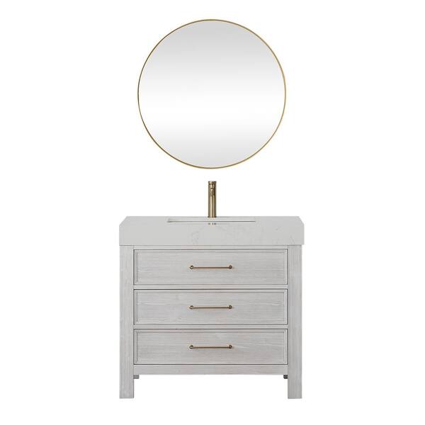 Leon 36 in. W x 22 in. D x 34 in. H Single Bath Vanity in Washed White with White Composite Stone Top and Mirror
