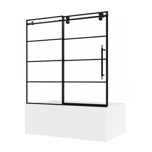 Losar 60 in. W x 66 in. H Sliding Frameless Bathtub Shower Door in Tempered Clear Glass with Matte Black