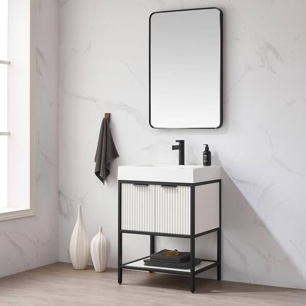 Marcilla 24 in. W x 20 in. D x 34 in. H Single Sink Bath Vanity in White with White Integral Sink Top and Mirror
