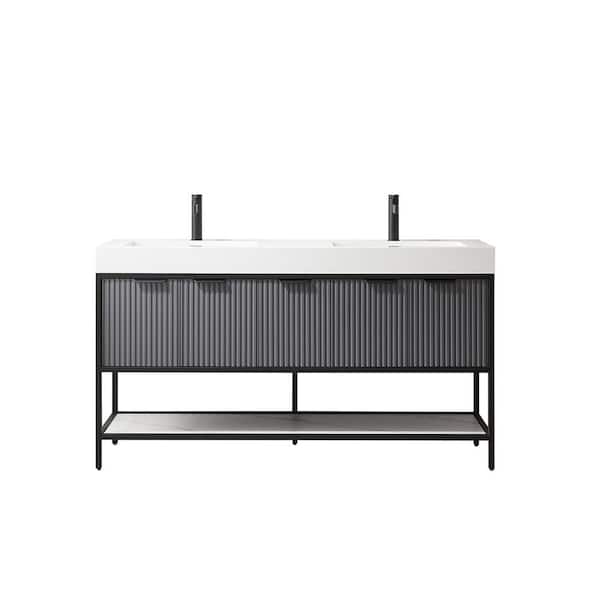 Marcilla 60 in. W x 20 in. D x 34 in . H Double Sink Bath Vanity in Grey with White Integral Sink Top
