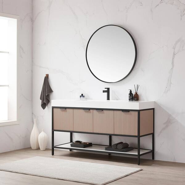 Marcilla 60 in. W x 20 in. D x 34 in. H Single Sink Bath Vanity in Almond Coffee with White Integral Sink Top and Mirror