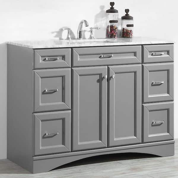 Naples 48 in. W x 22 in. D Vanity in Grey with White Marble Vanity Top in White with White Basin