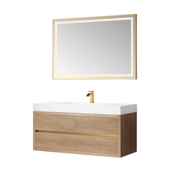 Palencia 48 in. W x 20 in. D x 24 in. H Single Sink Bath Vanity in N.American Oak W/White Composite Stone Top and Mirror