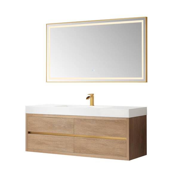 Palencia 60 in. W x 20 in. D x 24 in. H Single Sink Bath Vanity in N.American Oak W/White Composite Stone Top and Mirror