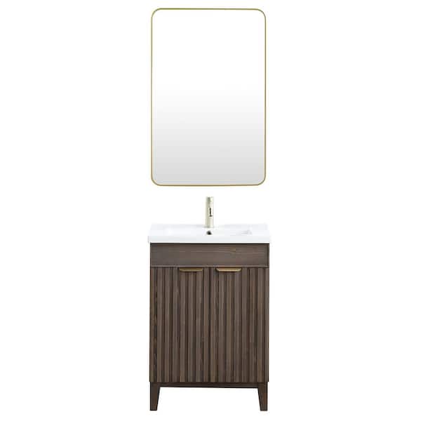Palos 24 in.W x 18.1 in.D x 34.8 in.H Single Sink Bath Vanity in Antique Brown with White Ceramic Basin Top and Mirror