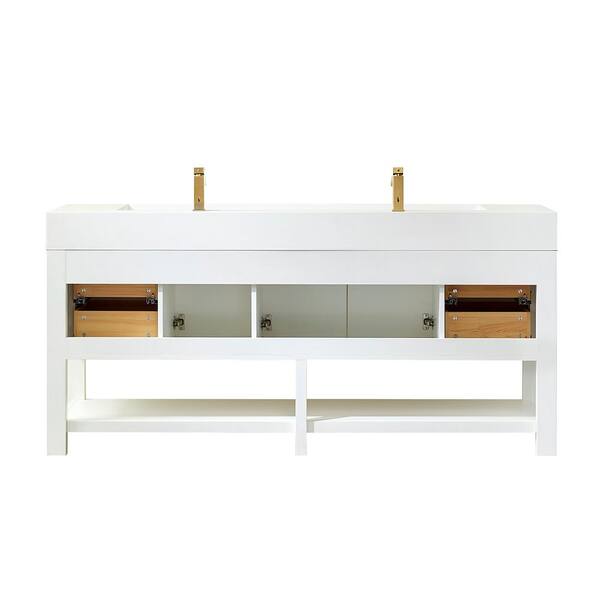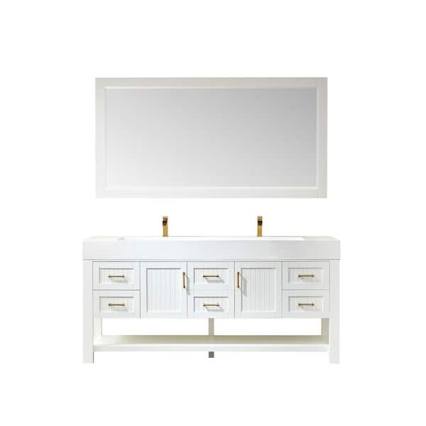 Pavia 72 in. W x 19.7 in. D x 34.6 in. H Bath Vanity in White with White Integrated Artificial Stone Top and Mirror