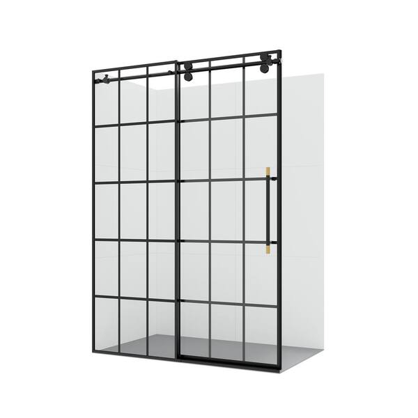 Puente 48 in. W x 78 in. H Single Sliding Frameless Shower Door in Matte Black with Clear Glass