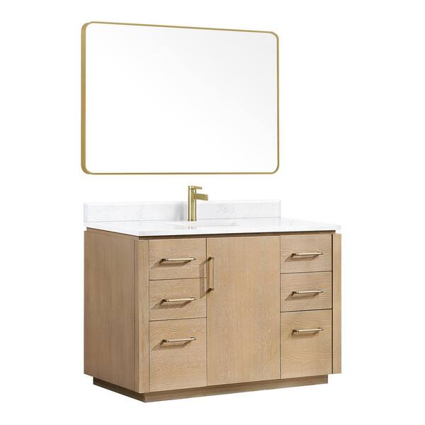 San 48 in.W x 22 in.D x 33.8 in.H Single Sink Bath Vanity in Washed Ash Grey with White Composite Stone Top and Mirror
