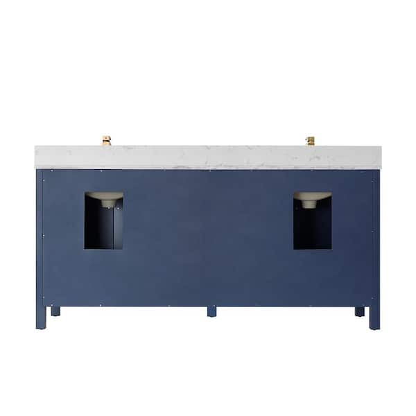 Shannon 72 in. Bath Vanity in Royal Blue with Composite Vanity Top in White with White Basin and Mirror