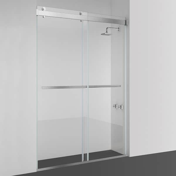 Spezia 48 in. W x 76 in. H Sliding Frameless Shower Door/Enclosure in Brushed Nickel with Clear Tempered Glass