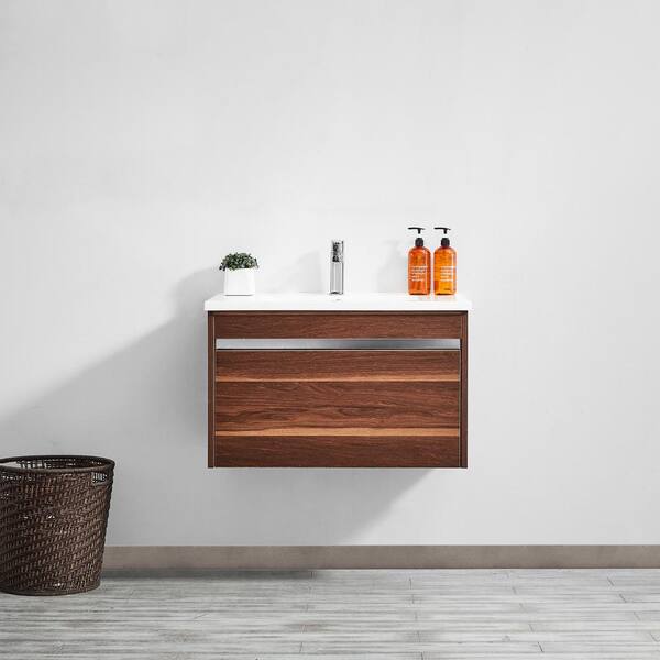 Thomas 29.5 in. W x 18.1 in. D x 18.7 in. H Bath Vanity No Side Cabinet in Walnut with Composite Acrylic Sink Top