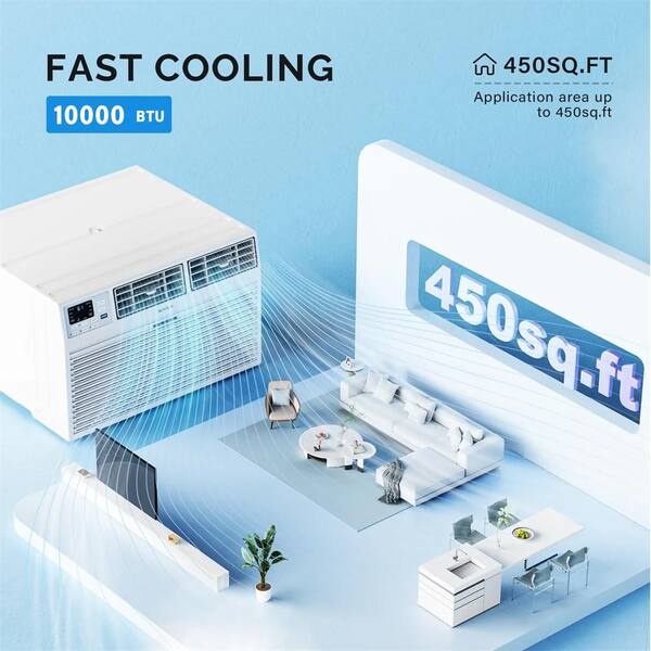 10,000 BTU (DOE) 115 Volts WIFI Through-the-Wall Air Conditioner 450 sq. ft. with Remote in White
