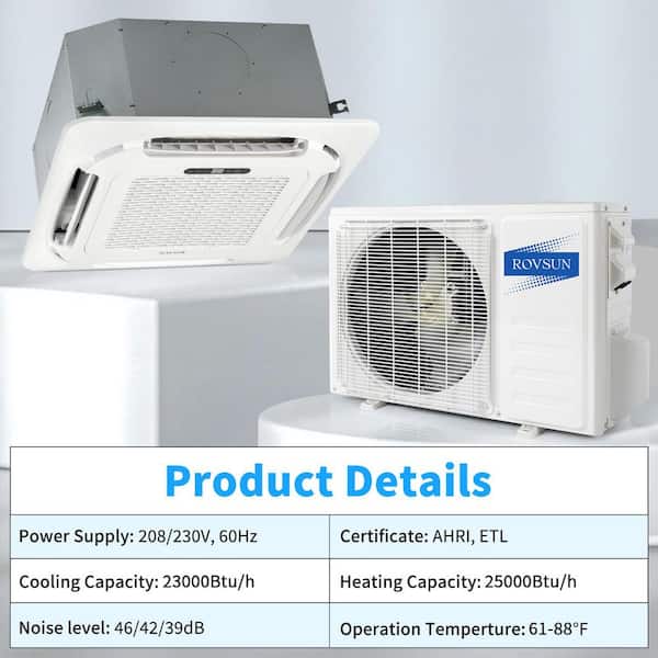 23 SEER2 23,000 BTU WIFI Ceiling Cassette Ductless Mini Split Air Conditioner with Inverter 230V