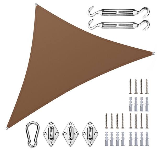 12 ft. x 12 ft. x 12 ft. Triangle Waterproof Shade Sail with Hardware Kit-Brown