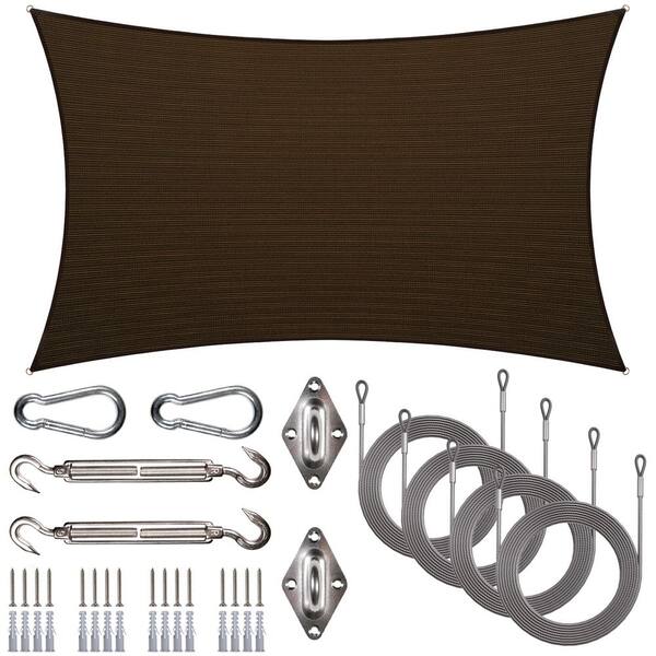 16 ft. x 20 ft. Rectangle Sun Shade Sail with Hardware Kit and Rope-Brown