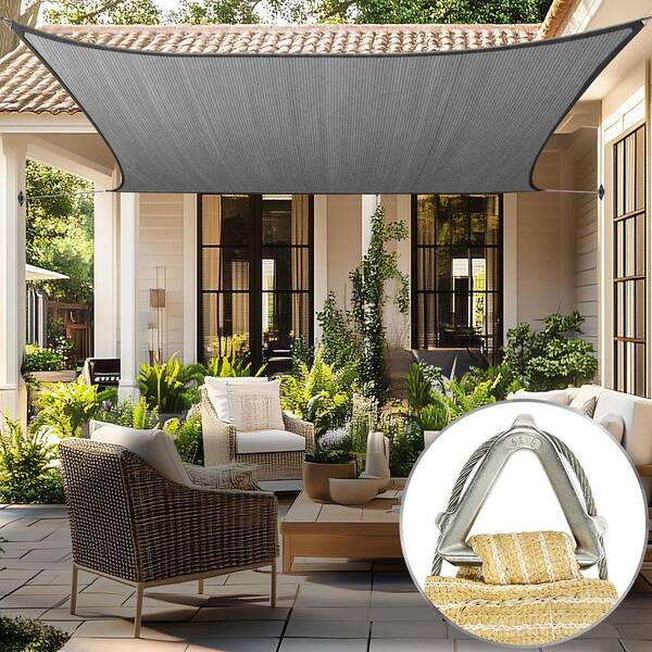 16 ft. x 22 ft. Rectangle Pro Ring Sun Shade Sail with Rope-Grey