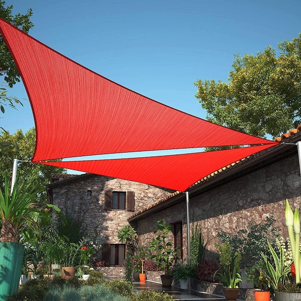 18 ft. x 18 ft. x 18 ft. Red Equilateral Triangle Sun Shade Sail Screen Canopy with Installation Hardware Kit and Rope