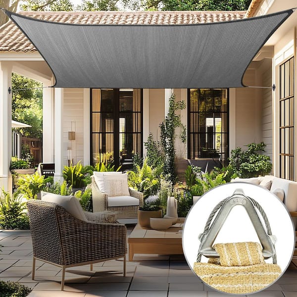 Pro Ring 16 ft. x 18 ft. Rectangle Sun Shade Sail with Hardware Kit and Rope-Grey