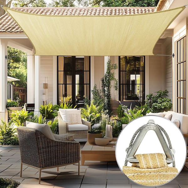 Pro Ring 22 ft. x 24 ft. Rectangle Sun Shade Sail with Hardware Kit and Rope-Beige