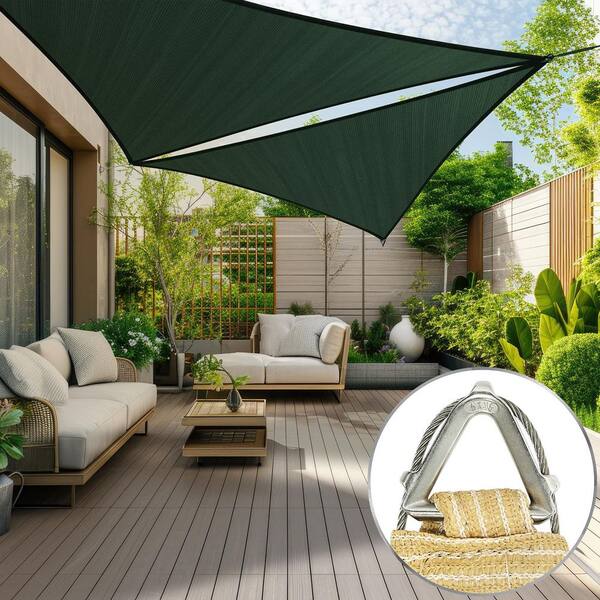 Pro Ring 24 ft. x 24 ft. x 24 ft. Triangle Sun Shade Sail with Hardware Kit and Rope-Green