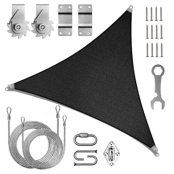 Super Ring 30 ft. x 30 ft. x30 ft. Triangle Sun Shade Sail with Winch Kit-Black