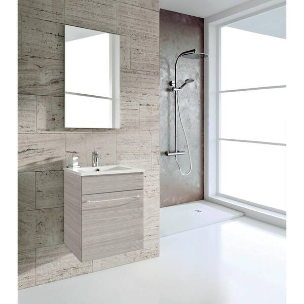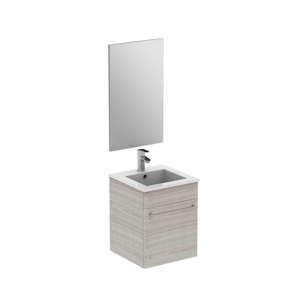 Qubo pack 16 in. W x 16 in. D Vanity in Sandy Grey with Vanity Top in White with White Basin and Mirror